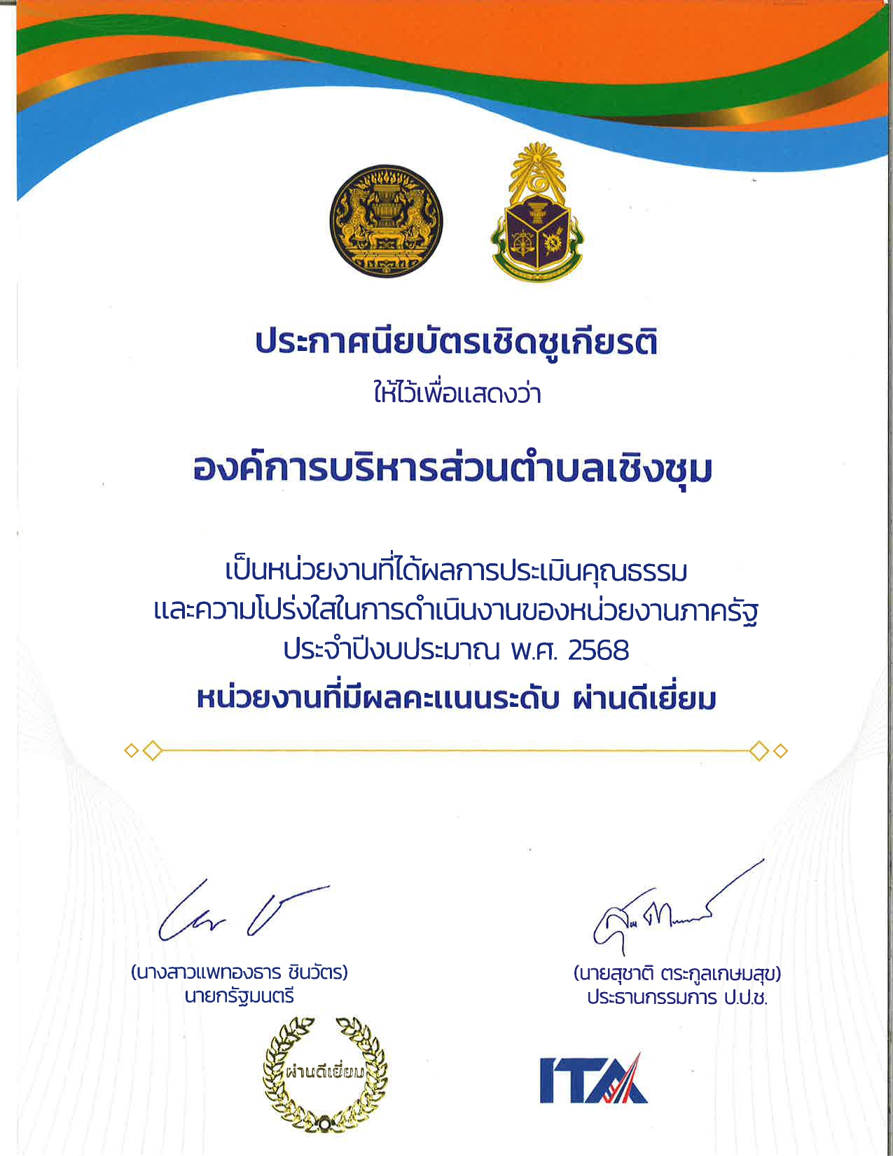 วันที่ 9 ธ.ค. 2568 องค์การบริหารส่วนตำบลเชิงชุม เข้าร่วมกิจกรรมวันต่อต้านคอร์รัปชันสากล (ประเทศไทย) ประกาศเชิญชวนคนไทยทั้งประเทศและชาวสกลนคร แสดงพลัง "HERO OF THE TRUTH : ร่วมหยุดคคอร์รับชัน ณ ห้องพระธาตุเชิงชุม ชั้น 4 ศาลากลางจังหวัดสกลนคร ในปีนี้จังหวัดสกลนครได้คะแนนภาพรวมจังหวัด 93.36 คะแนน โดยได้รับเกียรติบัตรของหน่วยงานภาครัฐที่มีคะแนนผลการประเมินในระดับ "ดีเยี่ยม" จำนวน 22 ราย ใน 11 อำเภอ